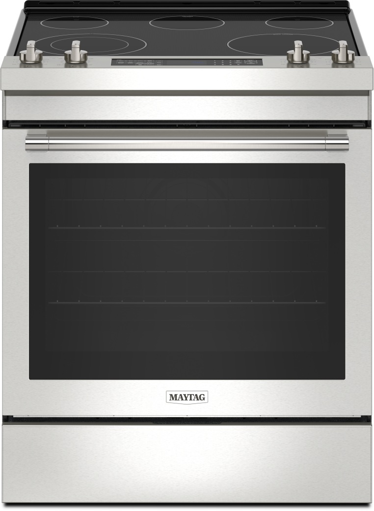 The Maytag® electric slide-in range offers a lot of hardworking features to handle the cooking for you in the kitchen. Air Fry crisps up your favorite foods, true convection oven makes delicious baked goods and Power Preheat gets you to dinner fast.Read More